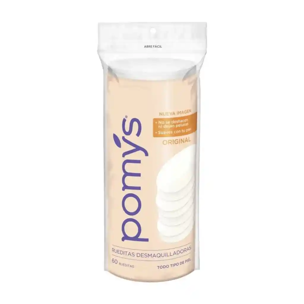 🧼💙 Pomys Rueditas Desmaquilladoras Original x60 Discos de algodón diseñados para limpiar y desmaquillar el rostro de forma efectiva y suave. ✔ Contenido: 60 unidades ✔ Algodón suave y resistente ✔ Ideales para desmaquillar y aplicar productos ✔ Uso diario 💙 Perfectas para la rutina de limpieza facial ✨ Limpieza práctica y cómoda ⚠️ Uso externo ⚠️ Producto desechable