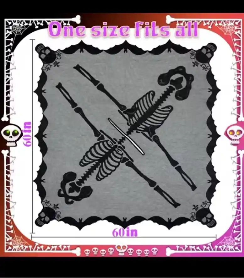 OurWarm-Poncho de tela de araña de encaje, capa de Halloween para mujer, Poncho de esqueleto negro para Halloween, disfraz de Día de los muertos en tamaño adulto Descripción del Producto: 1. Diseño elegante: el poncho de telaraña de encaje OurWarm presenta una hermosa tela de encaje que agrega un toque de elegancia a tu disfraz de Halloween o Día de Muertos. El intrincado diseño de telaraña añade un elemento único y espeluznante al aspecto general. 2. Ajuste versátil: el poncho está diseñado en talla para adultos, lo que lo hace adecuado para la mayoría de las mujeres. El estilo suelto y fluido permite un uso cómodo y un movimiento fácil, lo que lo convierte en una opción conveniente para cualquier evento de Halloween o fiesta de disfraces. 3.Material de alta calidad: este poncho está hecho de tela de encaje de alta calidad, lo que garantiza su durabilidad y longevidad. El material de encaje es ligero y transpirable, lo que evita molestias durante el uso prolongado. 4.Tema del Día de Muertos: El diseño del esqueleto negro en el poncho complementa perfectamente el tema del Día de Muertos, convirtiéndolo en un accesorio ideal para esta celebración. Combínalo con maquillaje de calaveras de azúcar y otros accesorios del Día de Muertos para completar tu disfraz. 5. Uso versátil: Además de los disfraces de Halloween y Día de Muertos, este poncho de encaje también se puede utilizar como cobertor o chal para otras ocasiones. Su elegante diseño lo convierte en un complemento para fiestas, bodas o eventos formales. Especificación de producto: Material: encaje yo libre Tamaño: 60 X 60 pulgadas (152 X 152 cm)