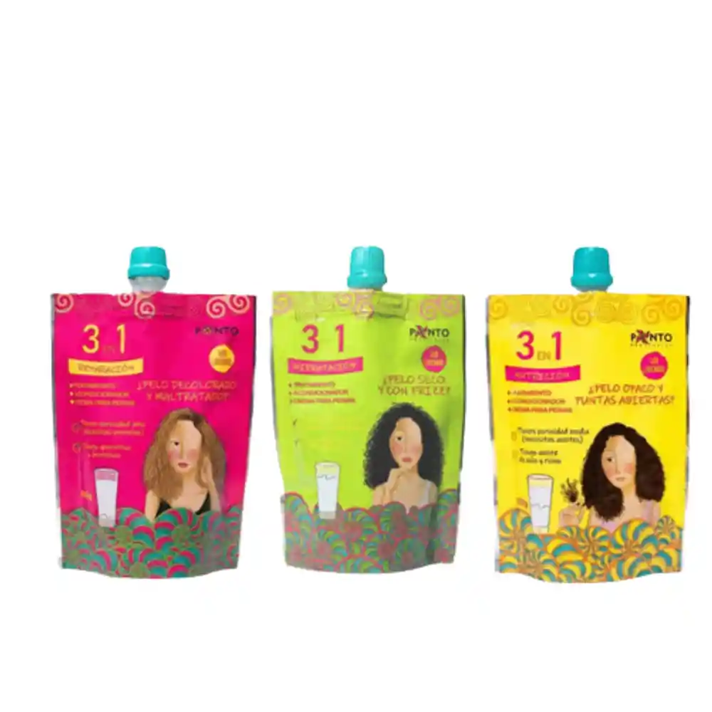 PONTO NUTRICION 3-1 -Ideal para cabellos con porosidad media. -Tratamiento: Utilizar sobre el cabello húmedo, dejar actuar durante 30 minutos y retirar con abundante agua. -Acondicionador: Utilizar después de lavar el cabello de medios a puntas. -Crema para peinar: Secciona y aplica sobre el cabello húmedo, define como más te guste. PONTO HIDRATACION 3-1 -Ideal para cabellos con porosidad baja. -Tratamiento: Utilizar sobre el cabello húmedo, dejar actuar durante 30 minutos y retirar con abundante agua. -Acondicionador: Utilizar después de lavar el cabello de medios a puntas. -Crema para peinar: Secciona y aplica sobre el cabello húmedo, define como más te guste. PONTO REPARACION 3-1 -Ideal para cabellos con porosidad alta. -Puede utilizarse como: -Tratamiento: Utilizar sobre el cabello húmedo, dejar actuar durante 30 minutos y retirar con abundante agua. -Acondicionador: Utilizar después de lavar el cabello de medios a puntas. -Crema para peinar: Secciona y aplica sobre el cabello húmedo, define como más te guste.