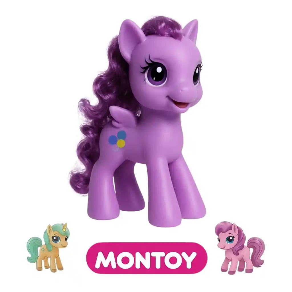 🦄✨ Pony Mágico MONTOY – Edición Fiesta de Globos 🎈💖 ¡La ternura y la diversión se unen en este adorable pony de juguete! Con colores vibrantes y una expresión alegre, este personaje es perfecto para estimular la imaginación de los más pequeños. 🌈 Color del cuerpo: Morado 💜 Melena y cola: Rizadas y de color morado y rosa 👀 Ojos grandes y expresivos: Azul celeste con mirada amigable 🎉 Cutie mark: Dos globos (uno azul y uno amarillo), símbolo de alegría y celebración 🧸 Material: Plástico suave y resistente, ideal para manos pequeñas ✨ Tamaño: 18 cm alto x 13 cm ancho Este pony forma parte de la colección MONTOY, reconocida por sus diseños coloridos y personajes entrañables. ¡Perfecto para regalar, coleccionar o crear historias mágicas en casa!