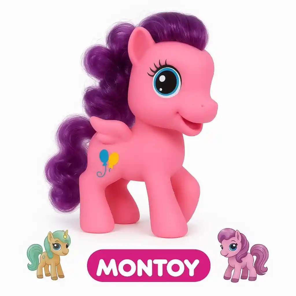 🦄✨ Pony Mágico MONTOY – Edición Fiesta de Globos 🎈💖 ¡La ternura y la diversión se unen en este adorable pony de juguete! Con colores vibrantes y una expresión alegre, este personaje es perfecto para estimular la imaginación de los más pequeños. 🌈 Color del cuerpo: Rosa brillante 💜 Melena y cola: Rizadas y de color púrpura 👀 Ojos grandes y expresivos: Azul celeste con mirada amigable 🎉 Cutie mark: Dos globos (uno azul y uno amarillo), símbolo de alegría y celebración 🧸 Material: Plástico suave y resistente, ideal para manos pequeñas ✨ Tamaño: 18 cm alto x 13 cm ancho Este pony forma parte de la colección MONTOY, reconocida por sus diseños coloridos y personajes entrañables. ¡Perfecto para regalar, coleccionar o crear historias mágicas en casa!