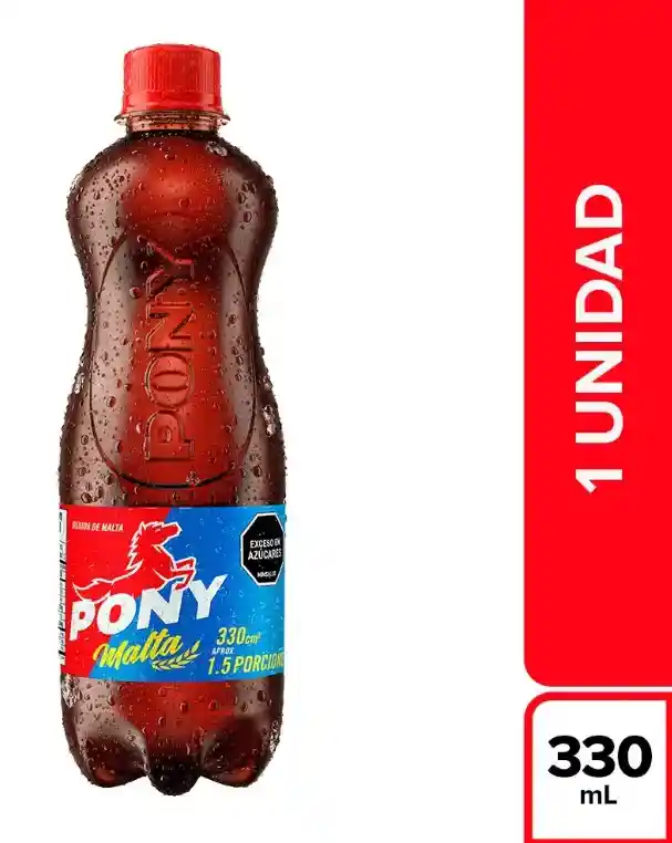 Pony Malta Pet 330 ml Caracteristicas Sin alcohol. Pasteurizada. Consumir en el menor tiempo posible después de abierto Hale lapestaña y rasgue el catón, guarde en la nevera, comparte cin tus amigos la energia nutritiva y refrescante de Pony malta Energia nutritiva y refescante Agua, azucar, malta, gas carbónico, color caramelo, acidulante, sabor artificial de vainilla, agregados vitamínicos y conservantes naturales.