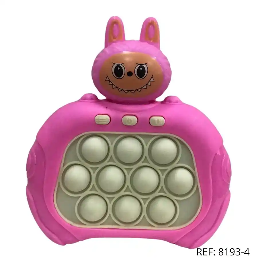Pop-it interactivo con figura rosa. Incluye luces, sonidos y botones para jugar sin parar.
