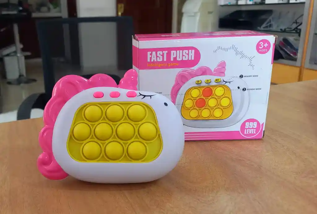 Descripción Pop-it QuickPush Juguete electrónico Sensorial Antiestres **** te llega cualquier motivo*** Proporciona una experiencia relajante y agradable tanto para niños como para adultos. Con su colorida máquina de juegos LED y su mecanismo de burbujas, este juguete seguramente les dará horas de entretenimiento. ESPECIFICACIONES - Mejora la capacidad de respuesta y la concentración de los niños. - Promueve la coordinación ojo-mano - Divertida alternativa a los videojuegos tradicionales - Se puede usar solo o con otros - Portátil y fácil de llevar. - Se requieren 3 pilas AAA (NO INCLUIDAS EN EL PAQUETE)