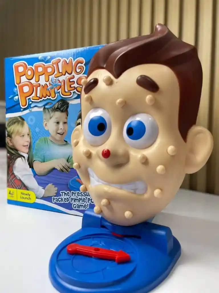 Popping Pimples es un juego de mesa divertido y ligeramente asqueroso que consiste en “explotar” espinillas en una cabeza gigante de juguete. Diseñado para niños y familias que disfrutan de retos diferentes y risas inesperadas, este juego estimula la motricidad y la coordinación mientras sorprende con cada turno