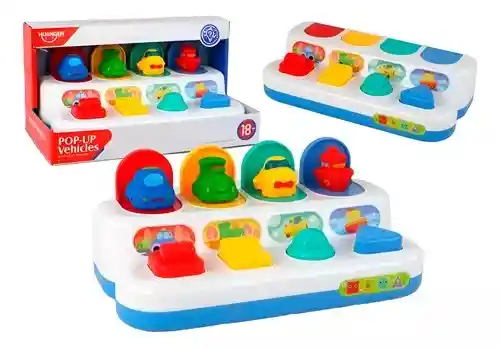 El Pop-Up Vehículos es un juguete educativo diseñado para estimular el desarrollo motriz y cognitivo de los bebés. Con figuras de un carro, un barco, un tren y un avión, este juguete invita a los pequeños a presionar y mover las diferentes figuras frontales para que los vehículos vuelvan a aparecer. Los bebés aprenden a coordinar sus movimientos al empujar cada vehículo hacia adentro y descubrir cómo hacerlo salir de nuevo, lo que fortalece sus habilidades de motricidad fina y les enseña la relación causa-efecto de manera divertida y entretenida. ¡Perfecto para el aprendizaje temprano a través del juego! Ficha Técnica: Dimensiones del juguete: 25 cm x 13 cm x 11 cm Material: Plástico ABS Edad recomendada: + 18 meses Certificado de conformidad: SL-CS-210044 Referencia: JB311