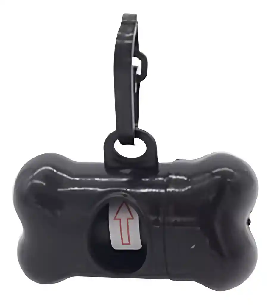 America store te trae El Porta Bolsa Huesito Para Mascotas + Bolsa Porta bolsas con diseño de hueso, cuenta con un orificio en donde podrá guardar las bolsas higiénicas y gancho ideal para fijar al collar o arnés de su mascosta. Cuenta con rollo de repuesto. Material: Plástico Color: Rojo, azul, negro, Disponible para Razas pequeñas, medianas y grandes