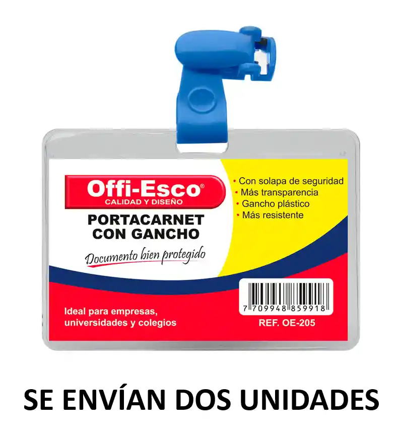 Con solapa de seguridad, Mas transparencia, Gancho plástico, Mas resistente, Ideal para empresas, universidades y colegios. Medidas: Largo 7,2 Cms, Ancho 10,2 Cms, Alto 2 mm , Peso: 10 gr