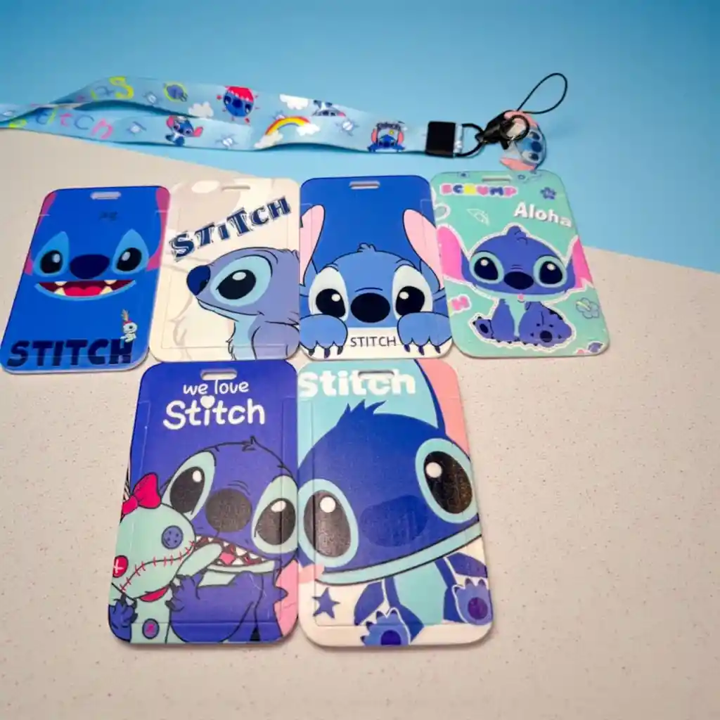 Porta carnet con diseño de Lilo & Stitch. Viene con cinta y yoyó para que puedas llevarlo siempre contigo.