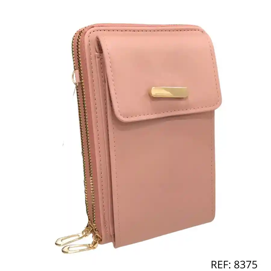 Billetera rosada tipo bolso para celular, con doble cierre y broche dorado. Práctica, elegante y de fácil acceso