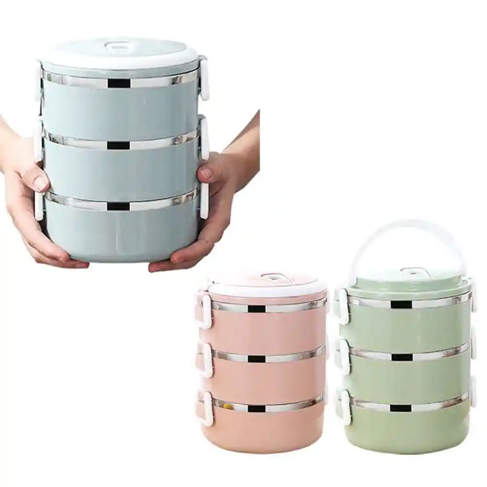 Con su diseño de 3 capas y gran capacidad de 2,100L, separa fácilmente los alimentos y te permite disfrutar de un delicioso almuerzo. Con su apariencia elegante, colores suaves y fácil portabilidad, le permite mostrar su gusto personal en cualquier momento y en cualquier lugar. Hecho de materiales de alta calidad, es resistente y duradero, no se deforma fácilmente, lo que garantiza la seguridad e higiene de los alimentos. Capacidad 2100ml Medidas 21x15cm Pregunta por los colores disponibles?