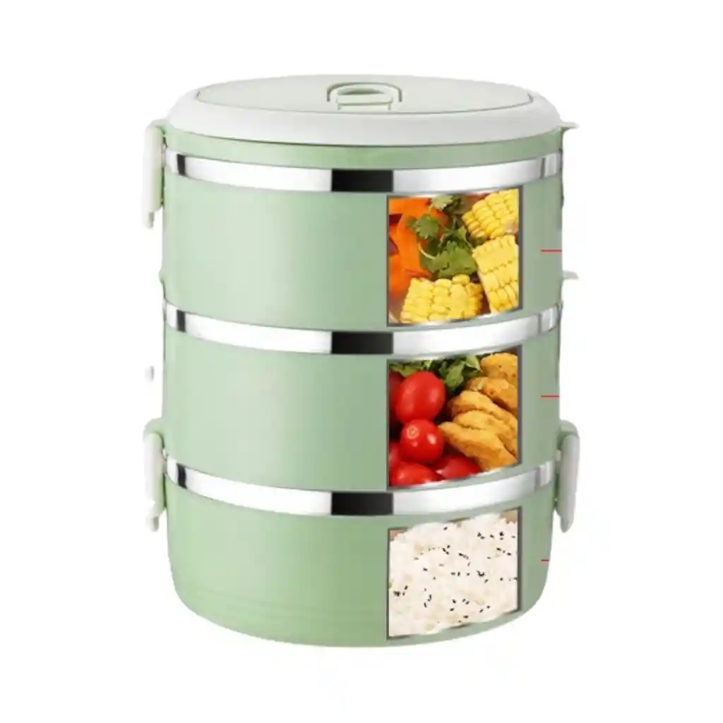 Con su diseño de 3 capas y gran capacidad de 2,100L, separa fácilmente los alimentos y te permite disfrutar de un delicioso almuerzo. Con su apariencia elegante, colores suaves y fácil portabilidad, le permite mostrar su gusto personal en cualquier momento y en cualquier lugar. Hecho de materiales de alta calidad, es resistente y duradero, no se deforma fácilmente, lo que garantiza la seguridad e higiene de los alimentos. Capacidad 2100ml Medidas 21x15cm Pregunta por los colores disponibles?