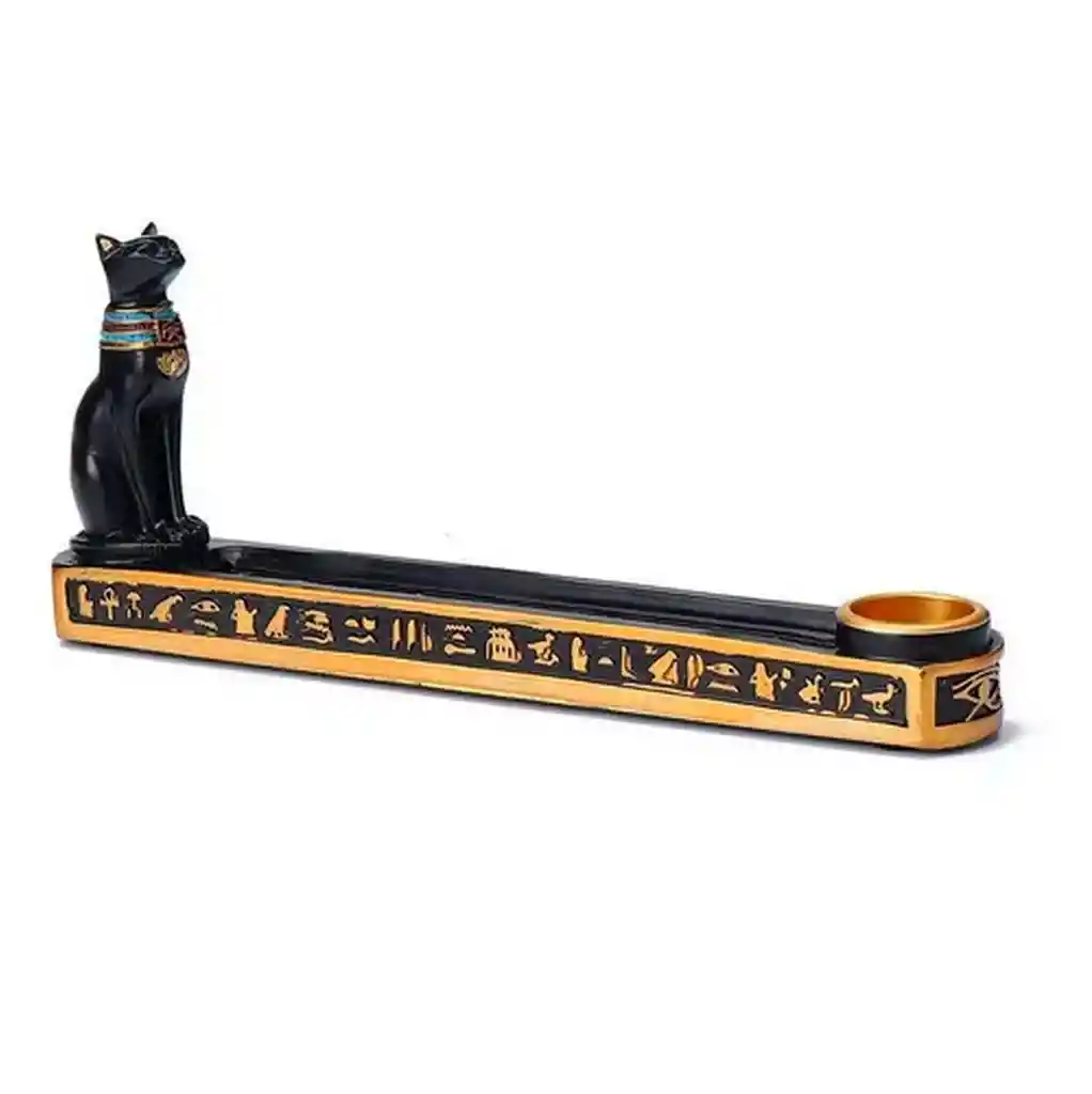 Este exclusivo Porta incienso y Porta Vela esta representado por la Diosa Egipcia Bastet connsiderada como la diosa del hogar, la domesticidad, los secretos femeninos, los gatos, la fertilidad y el parto. Protegía al hogar de espíritus malignos y enfermedades, especialmente aquellas asociadas a las mujeres y a los niños. Como era el caso de muchas deidades de la religión egipcia, también jugaba un papel importante en la vida después de la muerte., señor de la ciencia y la abundancia, que es altamente adorado por la capacidad de eliminar los obstáculos. Decora tu espacio favorito con este delicado artículo que traerá la buena suerte y armonía en tú hogar. ///incluye 3 Varitas de Incienso.//// Ficha Técnica: Dimensiones Figura: (Alto x Ancho x Largo): 10 cm x 3,6 cm x 24 cm Material de la figura: Poli resina Longitud de las varitas de incienso : 23 cm _Para defectos de fábrica o retractos: _Por favor revise el producto apenas lo reciba y antes de usarlo. No aplican ley de retracto o defectos de fábrica luego de usar el producto. Se manejan máximo 5 días para reportar defectos de fábrica (por ejemplo, producto funciona mal, piezas faltantes, rotas, etc). Para hacer efectiva la devolución el producto debe devolverse con el empaque original, el cual debe estar en buen estado, incluir todos los documentos y las partes completas y sin daños. Los cuidados y recomendaciones para mantener un producto en buen estado son los siguientes: No aplicarle perfumes ni cremas directamente, no mojarlos, no dejarlos caer y procurar limpiarlos para retirar suciedad. Precauciones: No dejar nunca una vela encendida sin vigilancia, y mantener fuera del alcance de los niños.