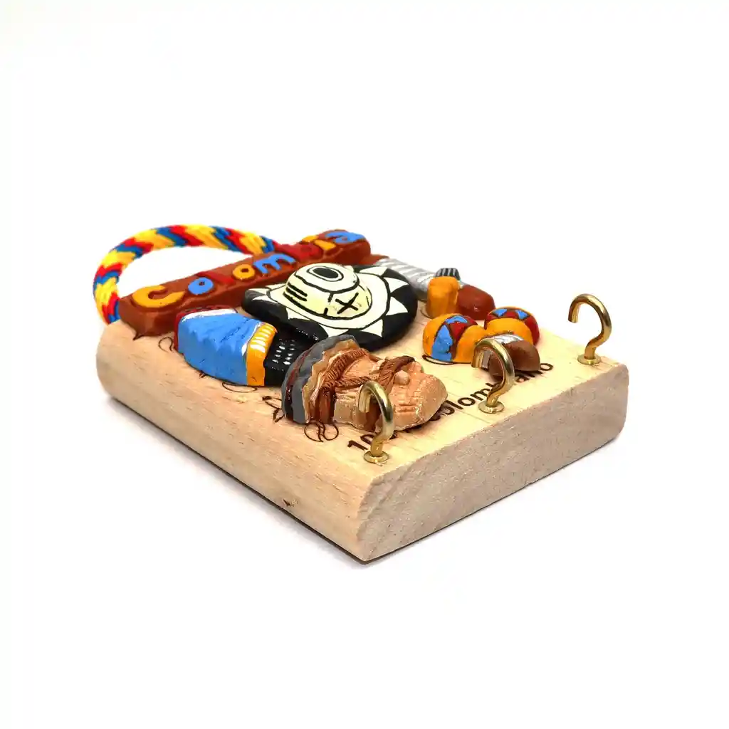 Porta llaves Hermoso y alusivo con una chiva representación Colombiana, moderno, artesanal, practico con excelentes acabados en madera de alta resistencia, hecho a mano para mantener tus llaves en el lugar apropiado, al tiempo que da ese toque de distinción a sus espacios. Se puede colgar en la pared fácilmente, gracias a su lazo tricolor Ficha Técnica: Dimensiones ( Ancho) : 7,5 cm Grosor : 1.5 cm Dimensiones ( Altura de la base en madera): 9,3 cm Dimensiones ( Altura de la base hasta el lazo tricolor) : 13,5 cm Material: Madera - Lazo Tricolor Posee 3 Ganchos para colgar tus llaves Términos de garantía: Para defectos de fábrica o retractos: Por favor revise el producto apenas lo reciba y antes de usarlo. No aplican ley de retracto o defectos de fábrica luego de usar el producto. Se manejan máximo 5 días para reportar defectos de fábrica (por ejemplo, producto funciona mal, piezas faltantes, rotas, etc). Para hacer efectiva la devolución el producto debe devolverse con el empaque original, el cual debe estar en buen estado, incluir todos los documentos y las partes completas y sin daños. Los cuidados y recomendaciones para mantener un producto en buen estado son los siguientes: No aplicarle perfumes ni cremas directamente, no mojarlos, no dejarlos caer y procurar limpiarlos para retirar suciedad.