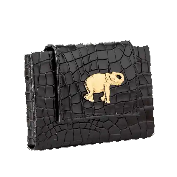Porta tarjetas (tarjetas de presentacion o de credito) en cuero texturizado con pin de elefante e interior en microfibra