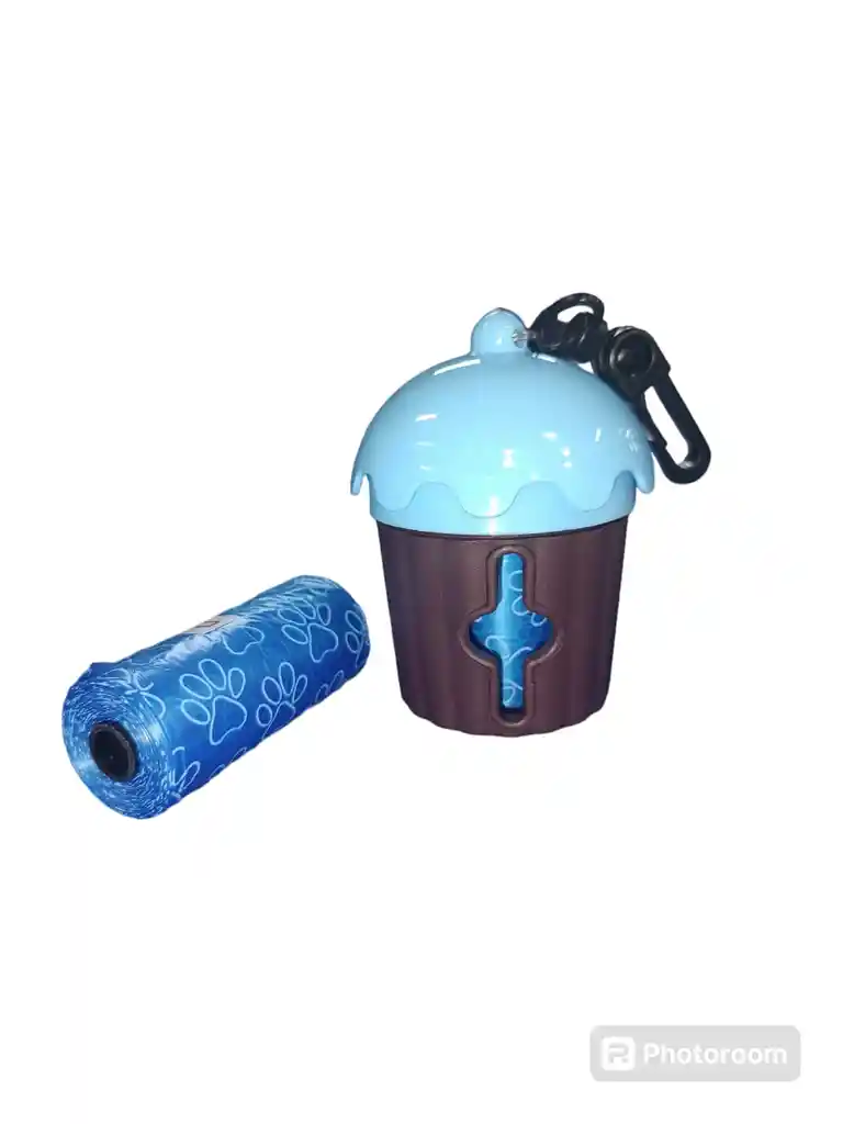 PORTABOLSAS EN FORMA DE CUPCAKE CON 2 REPUESTOS, porta bolsas para poder llevar de forma más fácil las bolsitas de las heces de los consentidos, ideal para colgarla en la correa