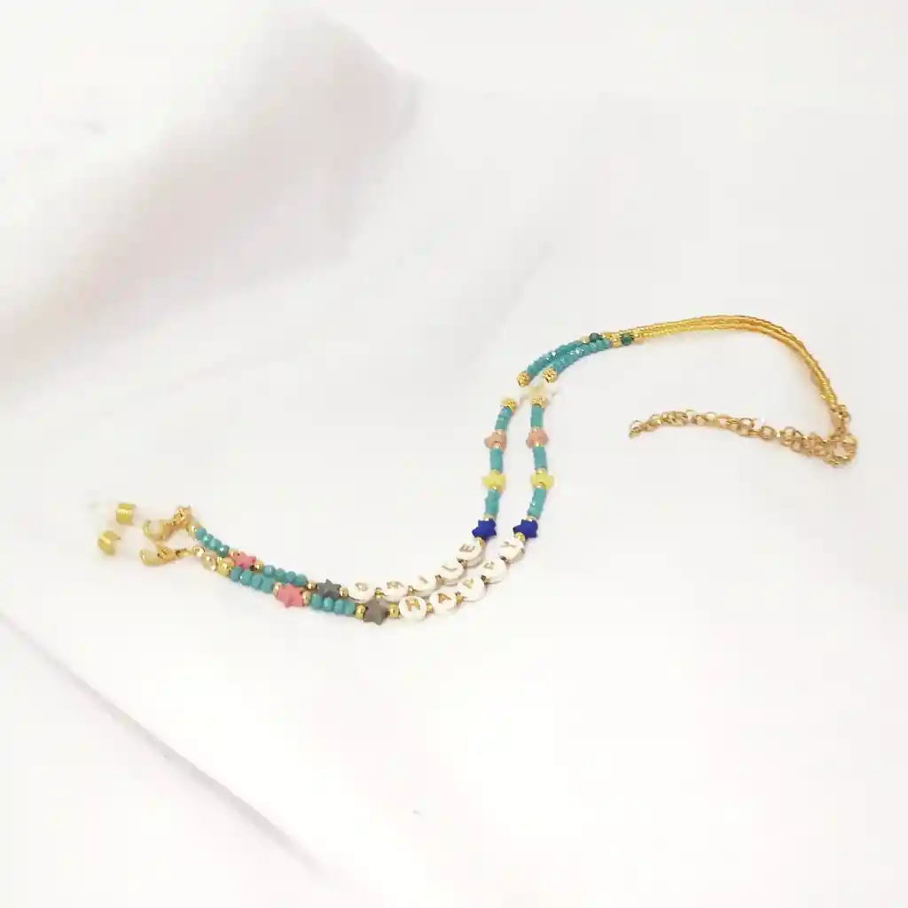 Elaborado con murano, estrellitas en acerina y cadena en acero