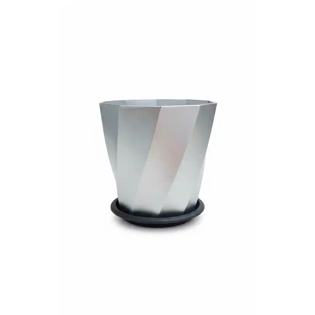 Acabado metalizado en color plata que aporta un estilo vanguardista y elegante a cualquier rincón de tu hogar u oficina. Fabricada en PVC de alta calidad, lo que asegura un producto ligero, resistente a golpes y de larga vida útil. Su cuerpo presenta un relieve inclinado que crea un efecto visual dinámico y sofisticado, facilitando además su agarre. Incluye un plato inferior en color oscuro que recolecta el exceso de agua, protegiendo tus muebles de manchas y humedad. Dimensiones ideales para albergar una gran variedad de plantas de interior, como anturios, helechos o plantas decorativas. Gracias a su material en PVC, es perfecta para el riego constante sin riesgo de oxidación o deterioro del material. Su estética metalizada combina armoniosamente con decoraciones de tipo minimalista, industrial o contemporáneo. Su peso liviano permite desplazarla fácilmente por diferentes estancias según las necesidades de luz de tu planta. La superficie lisa metalizada se mantiene impecable simplemente pasando un paño húmedo para remover el polvo acumulado. Diseñada para asegurar la salud de las raíces, permitiendo una correcta evacuación del agua hacia la base incluida. Pintura plateada con brillo satinado que simula el acero inoxidable, ofreciendo lujo a un precio muy accesible. Dimensiones: Boca matero 15.3cm, base 10cm, grosor matero 0.4mm. Estos productos han sido ambientados, los accesorios adicionales no están incluidos y su color puede variar por la luz.