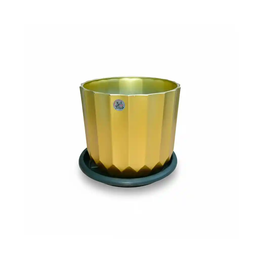Acabado metalizado en color dorado que aporta un toque de lujo y sofisticación a cualquier rincón de tu hogar u oficina. Fabricada en PVC de alta calidad, lo que garantiza un producto ligero, duradero y resistente a la humedad. Incluye un plato o base inferior en color oscuro que ayuda a recoger el exceso de agua y protege tus superficies. Su cuerpo presenta un relieve de líneas verticales que crea un efecto visual moderno y facilita el agarre. Dimensiones ideales para plantas pequeñas, suculentas o cactus, adaptándose perfectamente a espacios reducidos. Combina armoniosamente con decoraciones de tipo minimalista, clásico o contemporáneo gracias a su brillo equilibrado. Gracias a su material sintético, puede ubicarse en repisas internas o en balcones protegidos sin deteriorarse. Su peso liviano permite moverla con facilidad para reorganizar tu decoración o cambiar la planta de lugar. Su superficie lisa permite una limpieza rápida utilizando simplemente un paño húmedo para mantener su brillo. Por su color vibrante, actúa como un excelente acento decorativo en estanterías, escritorios o mesas de centro. Dimensiones: Boca matero 2cm, base 6cm, grosor matero 0.3mm. Estos productos han sido ambientados, los accesorios adicionales no están incluidos y su color puede variar por la luz.