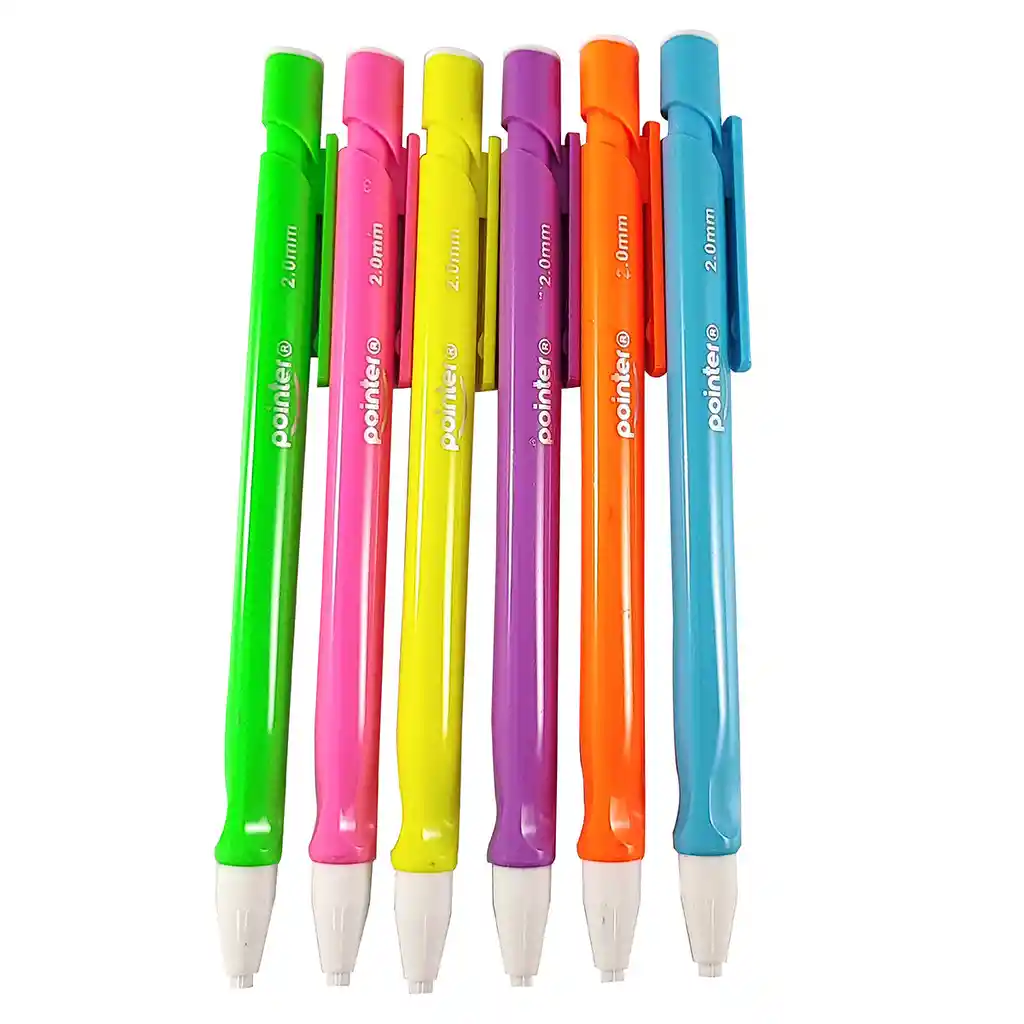 PORTAMINAS 2 mm Pointer, con mina en grafito de graduación Nº 2B-HB con sacapuntas, afilaminas en el pulsador. x 12 colores surtidos Somos Bocetos Papelería. Empresa Santandereana, ubicados en Bucaramanga, con más de 40 años en el mercado, orgullosos de ser distinguidos en el ámbito comercial, por cumplir a cabalidad nuestra mayor política: brindar siempre y en todo momento una experiencia de satisfacción total a las necesidades de nuestros clientes. Un diseño muy lindo de portaminas, para personalizar tus espacios académicos, de oficina o en tu estudio. Portaminas de punta gruesa a base de grafito El clip sujetador es plástico, el pulsador y empuñadura son Plásticos. Incorpora un sacapuntas, afilaminas en el pulsador. Solo tienes que extraer el pulsador, introducir la mina en el orificio y afilar. Incluye una mina 2B.