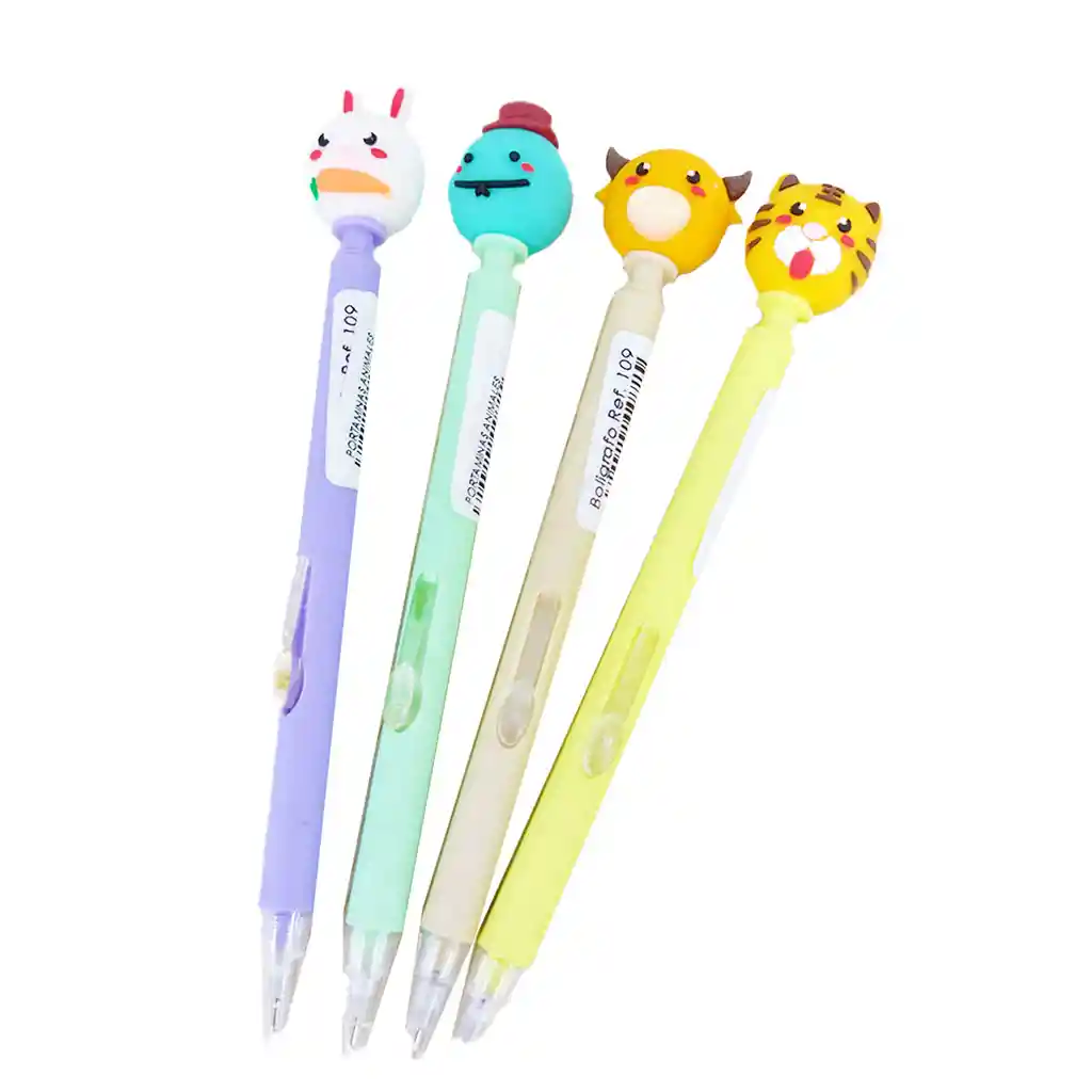 PORTAMINA CON DISEÑOS DE PERSONAJES Unos lindos diseños de portaminas para que lleves a todas partes. Disponible en tonos pastel perfectos para todos los gustos, llévalos a la universidad, oficina o colegio. Su mina amortiguada está bien protegida contra la rotura y, como es completamente retráctil, no perfora la tela de tu bolsillo. DETALLE DEL PRODUCTO: 1 Portaminas con diseño de diámetro 0,7 mm