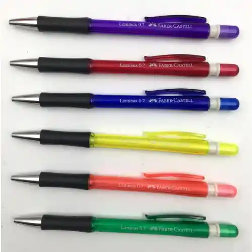 herramienta de escritura diseñada para ofrecer suavidad, control y durabilidad en tus actividades diarias. Gracias a su mina de grafito de 0.7 mm, proporciona líneas firmes y definidas, ideales tanto para escritura continua como para bocetos y anotaciones rápidas. Este portaminas cuenta con un cuerpo redondo y una zona de agarre ergonómica, que garantiza comodidad incluso durante largas jornadas de escritura. Su mecanismo retráctil protege la mina cuando no está en uso, evitando quiebres accidentales y manteniendo el portaminas siempre listo para trabajar. Además, incluye una goma de borrar en la parte superior, perfecta para corregir con facilidad cualquier detalle. Ficha técnica Marca: Luminux Tipo: Portaminas Diámetro de mina: 0.7 mm (grafito) Cuerpo: Redondo Zona de agarre: Ergonómica y redonda Mecanismo: Retráctil Goma: Incorporada en la parte superior Uso: Escolar, oficina, dibujo técnico ligero, notas y bocetos ¿Para qué sirve? El Portaminas Luminux 0.7 mm es ideal para: Escritura diaria en cuadernos, agendas y libretas. Tomas de apuntes en clases, reuniones o estudios. Bocetos y dibujos rápidos, gracias a la firmeza de la mina 0.7 mm. Uso en oficina, ofreciendo una herramienta cómoda y confiable para largas sesiones de trabajo. Correcciones rápidas, gracias a su goma integrada.