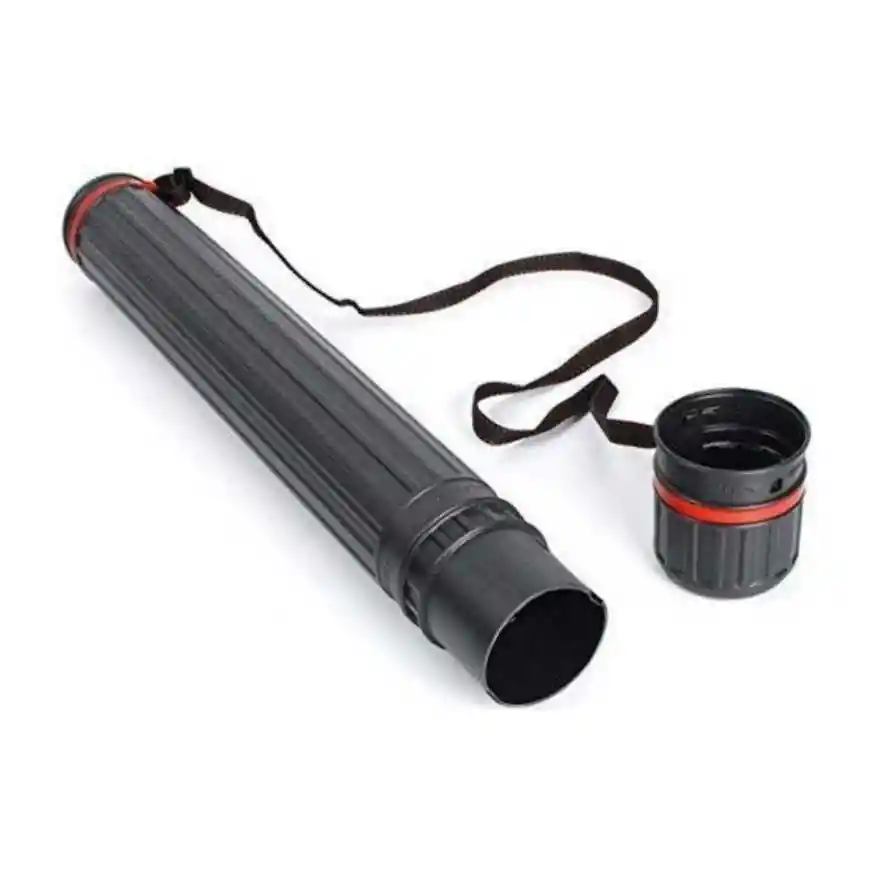 Tubo portaplanos plástico con tapa, diámetro 8 cm. Ajustable de 64 cm a 108 cm. Portaplanos plástico. Expandible Graduable Color negro Correa ajustable