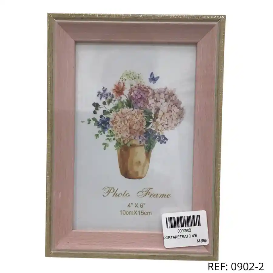 Marco 4x6" con flores en acuarela. Ideal para fotos familiares.