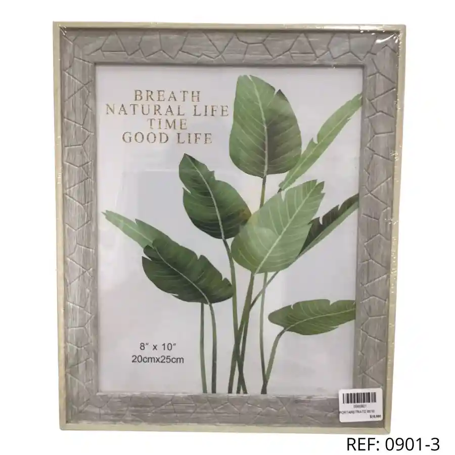 Portarretrato 8x10" con marco gris texturizado y diseño natural. Ideal para decorar espacios modernos.