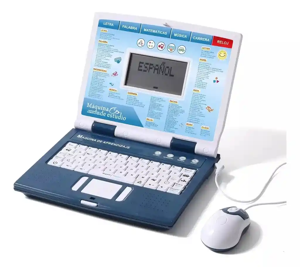 Este portátil educativo bilingüe, diseñado para niños, ofrece una divertida y efectiva forma de aprendizaje en inglés y español. Con 130 actividades y juegos desafiantes, fomenta el desarrollo de habilidades lingüísticas, matemáticas, escritura, música y lógica, distribuidos en 65 actividades por idioma. Su diseño ergonómico, inspirado en portátiles reales, incluye un teclado y mouse realistas, lo que permite a los niños familiarizarse con el uso de una computadora. Fabricado con materiales resistentes y duraderos, garantiza horas de juego educativo. /// El computador incluye baterías /// Ficha Técnica: Dimensiones del Portatil : 25 cm x 22 cm X 4 cm Material: Plástico ABS - Pantalla led Funciones: Sonido, luz , Aprendizaje Alimentación: 3 Baterias AA ( iNCLUIDAS) Edad Apta : + 3 Años Referencia: C3485 Certificado de conformidad: E5-0359-2021 ** _Para defectos de fábrica o retractos: \_Por favor revise el producto apenas lo reciba y antes de usarlo. No aplican ley de retracto o defectos de fábrica luego de usar el producto. Se manejan máximo 5 días para reportar defectos de fábrica (por ejemplo, producto funciona mal, piezas faltantes, rotas, etc). Para hacer efectiva la devolución el producto debe devolverse con el empaque original, el cual debe estar en buen estado, incluir todos los documentos y las partes completas y sin daños.