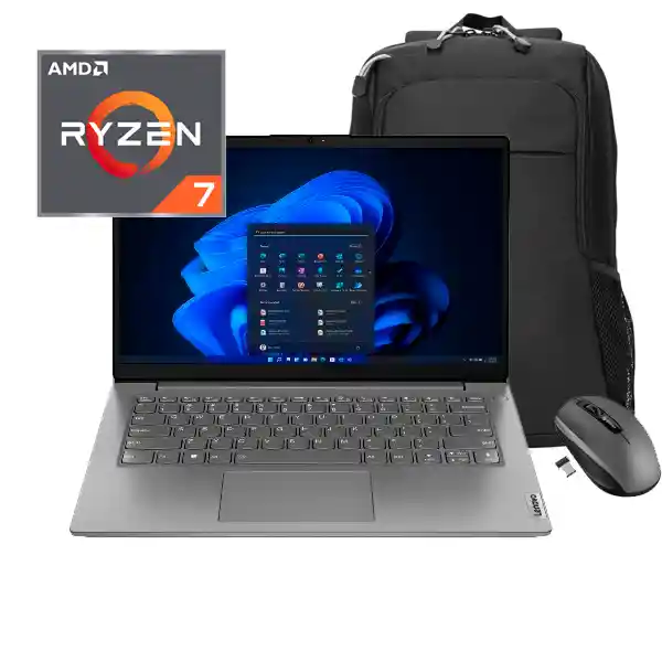 Lenovo V14 Gen 4 ABP | Procesador RYZEN 7 7730U ( 8 Cores + 16 Hilos) 2.0 GHz – 4.5 GHz,16 MB Cache, DASH NO | RAM 8 GB DDR4-3200, Crece Hasta 16GB (8GB soldered + 8GB SO-DIMM) | SSD 512GB SSD M.2 2242 | Ampliacion RAM&DD Confirmar en PSREF* | Chipset AMD SoC | Pantalla 14″ FHD (1920×1080) Anti Glare 250 Nits | Teclado Antiderrame de líquidos | Mouse Touchpad de una sola pieza | Graficos AMD Radeon Graphics | Camara HD 720p con microfono, ThinkShutter SI | Lector de Huella NO | Conexión Wi-Fi 6, 802.11ax 2×2 Wi-Fi + Bluetooth 5.2 | Puertos: 1x USB 2.0,1x USB 3.2 Gen 1,1x USB-C 3.2 Gen 1 (support data transfer, Power Delivery 3.0 and DisplayPort 1.2),1x HDMI 1.4b,1x Headphone / microphone combo jack (3.5mm), 1x Power Connector, Ethernet (RJ-45) SI | Ranura Guaya SI | Batería 2 CELL 38WH INTERNAL, | Cargador 65W round tip (3-pin) | Color Iron grey | Material PC-ABS (top), PC-ABS (bottom) | Peso 1.43 KG | Certificaciones: MIL-STD-810H military test passed. ErP Lot 6-26,FSC Sistema Operativo: Windows 11 P.I OBSEQUIOS: MORRAL Y MOUSE INALAMBRICO