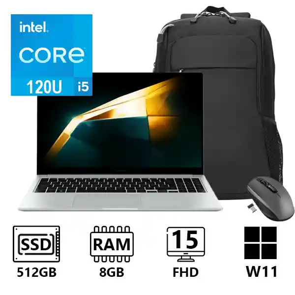 Processor / Chipset Intel Core™ 5 Processor 120U (1.4 GHz up to 5.0 GHz 12 MB Smart Cache) Graphic Intel Graphics Pantalla 15.6" FHD LED Display (1920 x 1080), Anti-Glare Memoria 8 GB LPDDR4x Memory (On Board 8 GB) Almacenamiento 512 GB NVMe SSD Number of SSD Slots : 2 Optical Drive None Color Gris MULTIMEDIA Stereo Speakers ( 2 W x 2 ) Dolby Atmos® Internal Dual Array Digital Mic 720p HD Camera Network Bluetooth v5.2 Wi-Fi 6 (Gig+), 802.11 ax 2x2 Gigabit Ethernet [10/100/1000] Ports 1 HDMI 2 USB Type-C 2 USB3.2 MicroSD Multi-media Card Reader 1 Headphone out/Mic-in Combo 1 RJ45 (LAN) Input Pro keyboard with Numeric key Clickpad Seguridad Security Slot TPM Consumo de energía 54 Wh 45 W USB Type-C Adapter Sistema Operativo: Licencia de Windows 11 Home OBSEQUIOS: MORRAL Y MOUSE INALAMBRICO