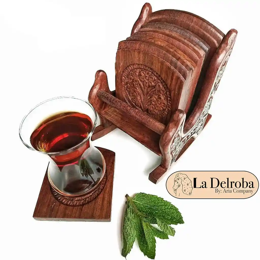 Portavasos en forma de Silla.Material: MaderaColor: CafeHecho en: IndiaX6 portavasosPeso: 448gTamaño: -Largo: 10cm -Ancho: 9cm -Alto: 14cmTamaño cada portavaso: -Largo: 7.5cm -Ancho: 9cm -Grosor: 1cm approx.