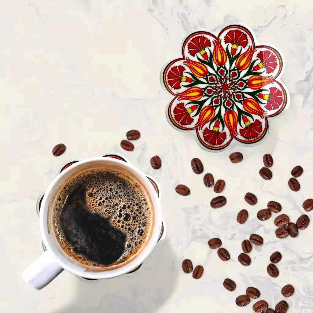 Portavasos Turcos • Medidas: 9x9x1cm aprox • Material: cerámica • Fabricado en Turquía • Paquete incluye 1 portavasos *Debido a factores como la luz y las pantallas, existen ligeras diferencias entre el producto y la imagen*