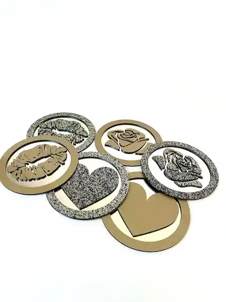 6 Portavasos en Metal + Acrílico Con Diferente Diseño (12 cm de Diámetro) Combinado
