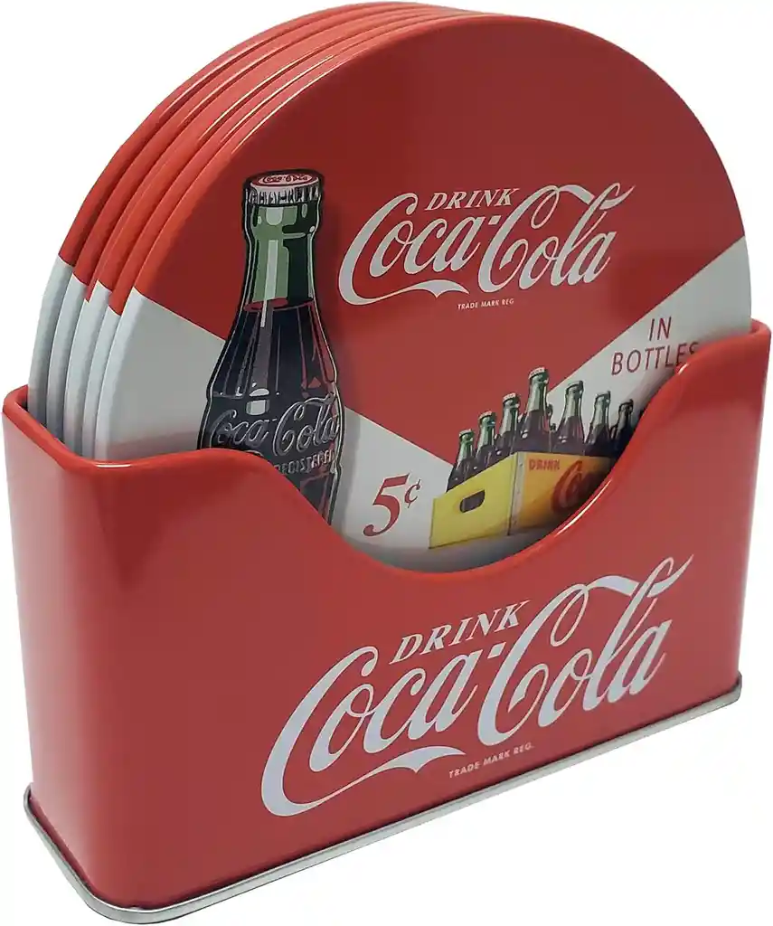● Portavasos coca cola original x6 porta vasos mesa comedor ● Juego de 6 posavasos originales en soporte metálico. ● Los posavasos redondos miden 4" de diámetro cada portavaso cocacola. ● Viene con respaldo de corcho antideslizante. ● Viene con un soporte de metal sólido para guardar cuando no esté en uso.