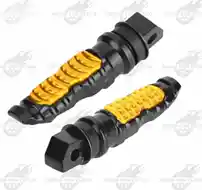 Material: Aluminio resistente con superficie antideslizante en goma de alta adherencia. Ajuste: Se encajan en la base original del posapies. Detalles: Diseño deportivo con acabado llamativo, mejora el agarre del pie. Sirven como posapiés para mayor estabilidad al copiloto o al piloto.