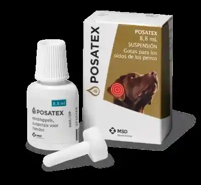 Posatex es una suspensión ótica veterinaria de uso tópico utilizada para tratar la otitis externa aguda y sus exacerbaciones recurrentes en perros. Combina tres componentes activos (orbifloxacino, posaconazol y furoato de mometasona) para combatir infecciones bacterianas y fúngicas, reduciendo la inflamación, el dolor y el mal olor en los oídos.