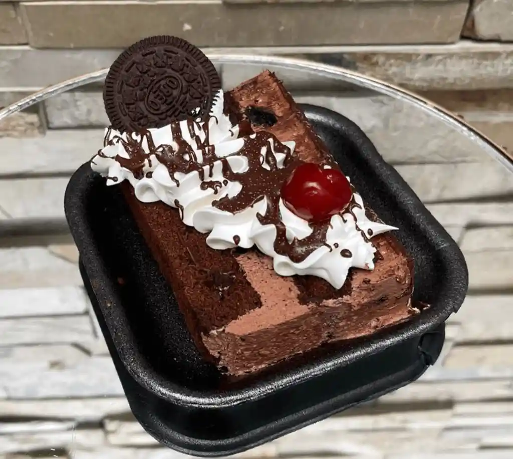 Esponjado de chocolate con torta, crema chantilly y galleta