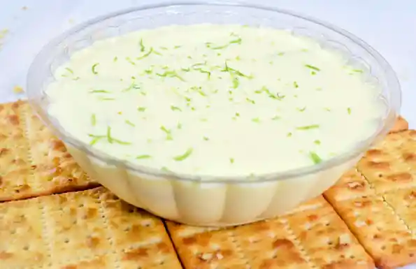 Delicioso postre, echo con zumo de Limon 100% natural, crema de leche, leche condensada, leche liquida y leche en polvo, crema batida. ideal para compartir en familia.