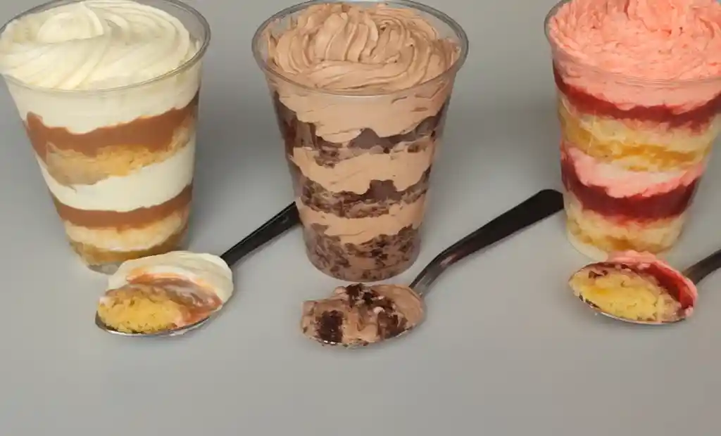 355gr de postre tres leches con bizcocho de chocolate, bañado con tres leches( crema leche, leche deslactosada y leche condensada)con topiing de chocolate y butter creamgr de