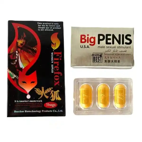 ===ll ENVIOS 100% DISCRETOS ll=== FIREFOX POTENCIADOR ESTIMULADOR SEXUAL FEMENINO Es un polvo cristalino sin color ni sabor, que se disuelve fácil y rápidamente en cualquier bebida; fría ó caliente, inclusive en agua pura. Su uso es muy efectivo para la excitación femenina de manera rápida ya que estimula la circulación sanguínea para lograr la contracción de la vagina aumentando la lubricación y el deseo de ser penetrada. Sus ingredientes actúan en diferentes zonas erógenas de la mujer como los pezones que se erectan y los senos se hacen más firmes momentáneamente, aumenta su frecuencia respiratoria, el clítoris se expande junto con los labios vaginales. El placer que permite FireFox a la mujer es querer sentir el miembro masculino. MODO DE USO: Disolver el polvo en líquido 20 minutos antes del encuentro sexual, puedes disolverlo en licor sin ningún problema. No tiene efectos secundarios más que aumentar la libido sexual femenina a su máximo nivel. PASTILLAS POTENCIADORAS: Este potenciador fue diseñado para incrementar los niveles de testosterona en los hombre, creando una alta concentración de potencia y energía así logrando mejorar los encuentros sexuales con una durabilidad y fuerza en el pene inigualable, ofreciendo la capacidad de aumentar el flujo de sangre en el tejido cavernosa corporal, incluso agrandando el pene mas delo normal. MODO DE USO: en la caja podrás encontrar 12 pastillas negras y 12 pastillas naranjadas en total 24, se debe consumir una de cada una 30 minutos antes del encuentro, evitar su ingesta con cítricos o lácteos ya que estos pueden reducir o cortar el efecto. GRACIAS POR TU COMPRA
