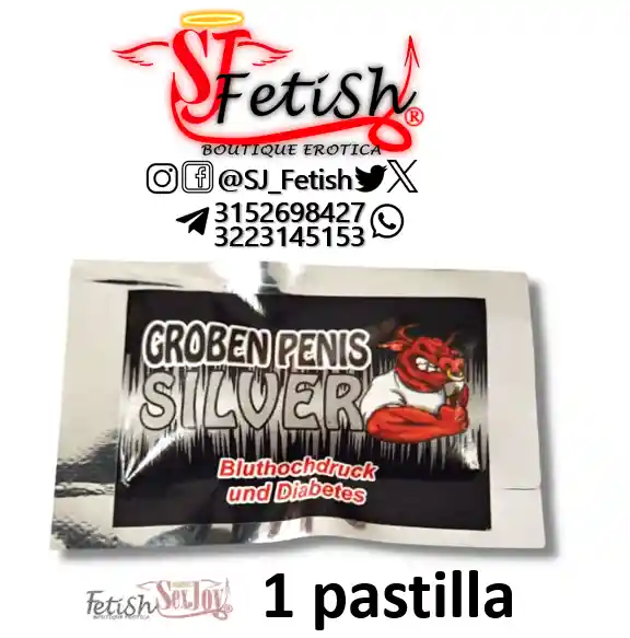 Groben Penis SILVER (1 Pasta) Estimulante Para Hombre. Puede ser tomado por personas Hipertensas. Abre extremadamente el apetito sexual Masculino, aumenta el placer en la relación, compatible con cualquier licor. Brinda directamente estimulación al órgano sexual masculino para acelerar el flujo de sangre a las celdas del cuerpo cavernoso del pene. Produce rápidamente y con efectividad una erección dura e inmediata. ¿Cuáles son las ventajas de tomar GROBEN PENIS SILVER? – Produce una erección consistente. – Aumenta la sensibilidad y apetito sexual. – Incrementa la duración de la erección. – Aumento de la confianza sexual. – Natural 100% – No es adictivo. Administración y dosificación: Tome una pastilla 1 hora antes de la actividad sexual. ¿Cómo mejorar el efecto de las pastillas? – Tomar la pastilla con un tiempo previo mayor al sugerido. – Tomar la pastilla con el estómago casi vacío y comer algo muy suave después. no ingerir lácteos ni bebidas azucaradas. – Si tiene el estómago lleno, habrá más sangre circulando en el sistema digestivo, en lugar de donde realmente la necesitas en el momento del acto sexual. – Tomar mucha agua. – El juego previo sexual (besos, abrazos, caricias) es muy importante. Entre más largo sea este, prepara el cuerpo e incrementa la circulación de la sangre. – ¡No te preocupes! Deja el estrés atrás y disfruta el momento. – ¡Relaja los músculos! Los músculos tensionados reducen el flujo sanguíneo y puede llevar a una eyaculación prematura. Disponible en sj fetish boutique erotica, boutique erotica, boutique erotica armenia, sex shop, sex shop armenia, tienda erotica, tienda erotica armenia, sexshop, sexshop armenia, tienda para adultos, tienda para adultos en armenia, tienda para adultos armenia