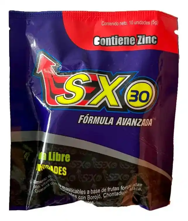 Todos nuestros productos son enviados 100% discretos y anónimos, embalados en caja o bolsa de seguridad sellada y sin transparencias. Tampoco nombres o evidencia de tienda erótica. Contenido: 2 sobres de SEX 30, para un total de 20 cápsulas Características: Sex 30 ha sido durante años y añales un famoso potenciador masculino. El pene lo coloca tiezo y mestizo. De una sola pieza, como una vela. Impulsa la testosterona y la libido masculina. Ayuda a una fuerte erección y a demorar más en el acto. Su efecto perdura por 48 horas. Hombres incluso llegan a decir que al día siguiente se sienten "más candentes". Sus ingredientes de origen natural le brindarán la fuerza, potencia y ganas de consumar el acto y sorprender a su pareja. Modo de uso: Tomar 1 cápsula 30 a 40 minutos antes. Nosotros recomendaríamos incluso empezar a probar SEX 30 con MEDIA cápsula, dado que es muy bueno y efectivo. Se recomienda a personas que padecen enfermedades cardiovascular o de hipo-hipertensión, consultar a su especialista antes de consumir este o cualquier producto similar.