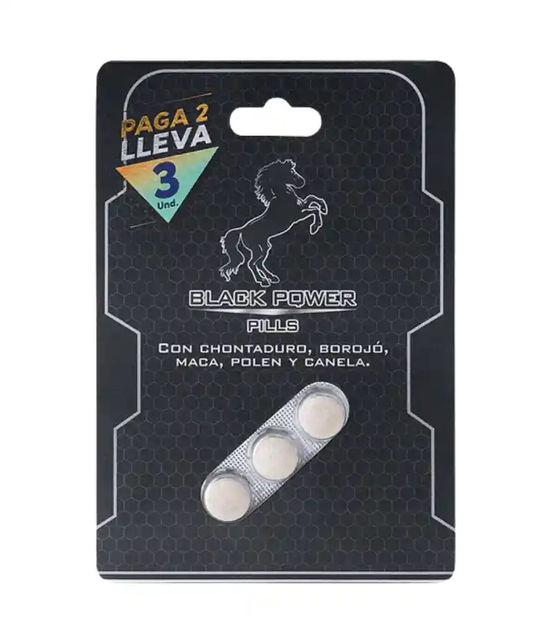 BLACK POWER Píldora de potenciador y energizante sexual. Black Power es un comprimido poderoso, 100% natural, que puede ayudarte a estimular el flujo sanguíneo brindando una erección fuerte y duradera sin causar adicción u otras afecciones, además de efectos positivos adicionales, como un aumento en el deseo sexual y vitalidad en general. La alternativa natural que no tiene ninguna contraindicación, efecto secundario o dependencia a su uso. ¿Cuál es el efecto? Por su alto contenido de Chontaduro, Borojó, Maca, Quinua, Polen, Canela y Zinc, brinda beneficios no solo para su vida sexual, sino también para su cuerpo en general. ¿Cuánto dura el efecto? El efecto de Black Power puede durar de 3 a 6 horas dependiendo de metabolismo de cada persona que lo consuma. ¿Es para hombres o mujeres? Black Power es un producto diseñado 100% para el hombre. ¿Se puede tomar en ayunas? Black Power se puede consumir a cualquier hora del día sin afectar sus propiedades. ¿Se puede mezclar con alcohol? Al ser un producto natural el alcohol o sustancias alucinógenas no alteran sus beneficios, ni generan contraindicaciones. ¿Tiene efectos secundarios? Black Power debido a sus nutrientes y al ser 100% natural no presenta efectos secundarios. Contraindicaciones: Manténgase fuera del alcance de los niños. Puede producir hipersensibilidad. No consumir en estado de embarazo y lactancia. Mantener en un lugar fresco y seco. ¿Cuáles son los componentes? Chontaduro: Mejora el sistema inmune, Mejora la función sexual aumentando el flujo sanguíneo, puede aumentar la cantidad de esperma, útil en el tratamiento de infertilidad masculina. Borojó: Mejora la potencia sexual, incrementa la libido y aumenta los niveles de resistencia y energía. afrodisíaco natural. Maca: Tiene propiedades energéticas, antidepresivas, anti-cancerígenas, protectoras de la piel… También es conocida por ser un afrodisíaco natural que aumenta la libido sexual de hombres. Quinua: Ayuda a eliminar células deterioradas, Tiene antioxidantes que ayudan a mantener sano el sistema cardiovascular de esta manera es eficaz en procesos circulatorios que ayudan a incrementar el flujo sanguíneo a nuestros órganos sexuales. Tiene propiedades que protegen contra el cáncer. Es un antiinflamatorio. Es rica en vitaminas, especialmente E y del complejo B. Polen: El polen de abeja es un conocido remedio para mejorar la sexualidad, pues aumenta el deseo y renueva la energía para tener un mejor desempeño en la intimidad. Beneficioso para aquellos hombres que sufren de trastornos en la próstata, pues les reduce el dolor y aumenta la sensación de placer. Canela: Es el único afrodisíaco natural reconocido como tal por la medicina, pues se sabe que actúa como estimulante del riego sanguíneo, especialmente en la zona abdominal del organismo. Esta acción mejoraría la irrigación de sangre en los genitales femeninos y masculinos, facilitando la excitación sexual. Zinc: Ayuda a producir hormonas sexuales clave, como la testosterona y la prolactina. También permite la creación del componente principal del líquido prostático y existen evidencias de que la ingesta de zinc afecta al rendimiento sexual masculino. ¿Cada cuánto se puede tomar el producto? Cuál es la dosis máxima? Black Power lo pueden consumir en cualquier momento que necesites incrementar tu actividad física si es la primera vez que tomas esta pastilla, recomendamos comenzar con una, para que conozcas sus efectos. Black Power cuenta con registro de INVIMA No NSA – 0010309-2021, es un producto de venta Libre y no presenta efectos secundarios ni dependencias. Es 100% natural. CONFIDENCIALIDAD: ¡Guardamos tus secretos con amor! En Sexfrodita, nuestros envíos son como pequeños misterios llenos de placer. Sin logos ni marcas, ¡solo tú descubrirás el contenido cuando abras el paquete!