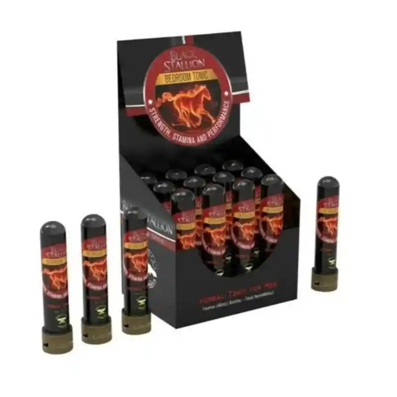Potenciador Sexual Masculino Black Stallion es un Suplemento Con Acción Concentrada Que Actúa Con Propiedades Vasodilatadoras Periféricas, Ofreciendo un Mejor Desempeño Sexual, Altamente Efectivo Para Mantener Erecciones Fuertes y Duraderas, Así Como Para Retrasar la Eyaculación y el Tiempo Refractario Entre Orgasmos. ¿De Qué Está Hecho?. Es un Suplemento Dietario a Base de Extractos de Frutos, Plantas y Aminoácidos, Logrando Combinarse en Una Formula Única y Exclusiva, Contiene: 8 mL, Modo de Uso: Consumir Todo el Frasco 30 Minutos Antes de la Relación.