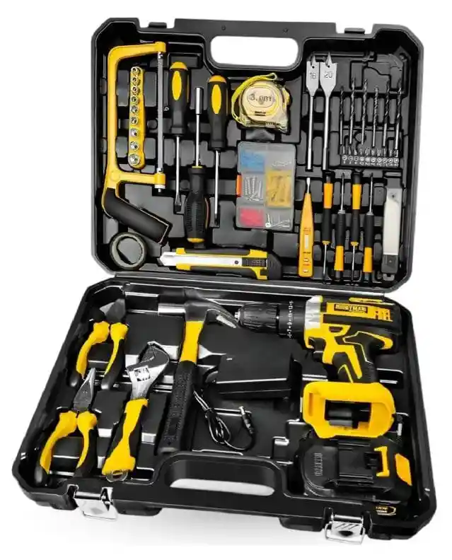 ¿Cansado de no tener la herramienta correcta en el momento justo? Dile adiós al desorden y a los proyectos a medias. Presentamos el Kit de Herramientas Profesional Premium Pro'Ekco de 120 Piezas, el compañero definitivo diseñado para el manitas moderno, el entusiasta del bricolaje y el profesional exigente. Esta no es solo otra caja de herramientas; es tu estación de trabajo portátil para conquistar cualquier desafío. La Potencia que Necesitas, Sin Ataduras: En el corazón de este kit se encuentra nuestro potente Taladro de Impacto Inalámbrico de 48V, una bestia con 25 ajustes de torque que atraviesa madera, metal y mampostería con una precisión asombrosa. Y con DOS baterías de iones de litio XR de 5Ah y un cargador rápido incluidos, nunca más te quedarás a mitad de un proyecto. La libertad inalámbrica nunca se sintió tan potente. Organización Inteligente para Tu Flujo de Trabajo: Olvida buscar a ciegas. El Estuche Portable de Alta Resistencia no solo protege tus herramientas, sino que las organiza de forma lógica. Cada una de las 119 piezas adicionales tiene su lugar dedicado. Desde el martillo de precisión y las llaves ajustables hasta el juego completo de brocas, puntas de destornillador, cutter, segueta y flexómetro, todo está al alcance de tu mano. Beneficios Transformativos: Empieza y Termina con Confianza: No más excusas. Tienes todo lo que necesitas para reparaciones rápidas, montajes de muebles complejos o renovaciones completas en el hogar. Calidad que Dura: Fabricado con materiales duraderos y diseñado con una ergonomía de primer nivel, cada herramienta en este kit está construida para resistir años de uso intenso. El Regalo Perfecto para el Creador: Ya sea para un cumpleaños, una nueva casa o simplemente para actualizar tu equipo, este kit Pro'Ekco es el regalo que sigue dando valor. Ahorra Tiempo, Ahorra Dinero: Comprar estas herramientas por separado te costaría más del doble. Este kit te ofrece una relación calidad-precio inmejorable. ¿Qué estás esperando? Toma el control de tus proyectos hoy mismo con el Kit de Herramientas Pro'Ekco 120 Pz. ¡Haz clic en "Añadir al Carrito" y desata tu potencial creativo!