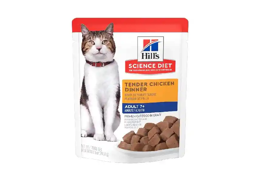 La comida húmeda para gatos Science Diet ahora viene en un pouch que es fácil de abrir y fácil de servir. Con deliciosos trozos en una deliciosa salsa, incluso a los paladares más exigentes les encantará esta suave comida para gatos. Ideal para gatos senior mayores a 7 años. Sirve esta nutrición premium a tu gato como una comida por sí sola, o mézclala con su alimento seco para gatos Science Diet.