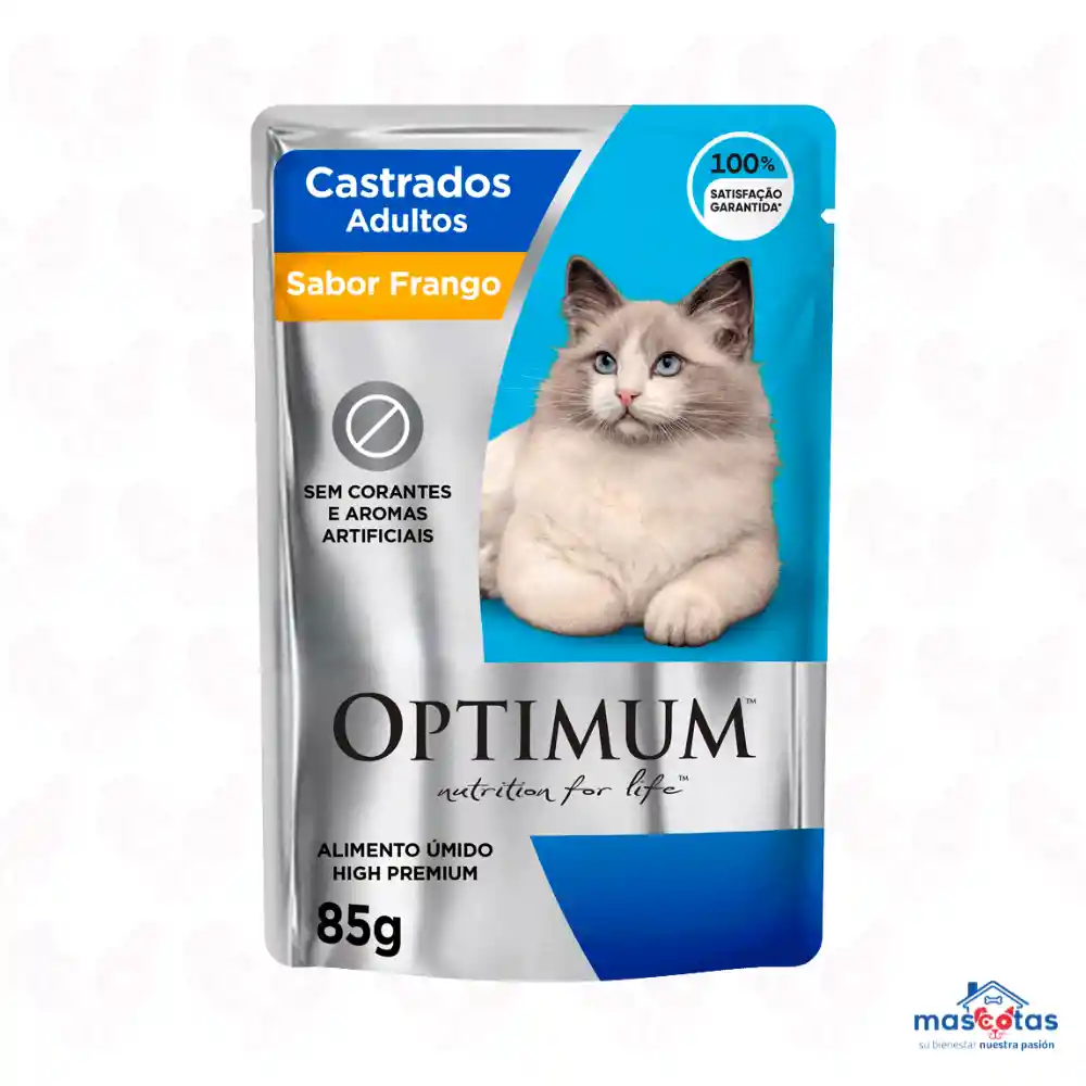 POUCH OPTIMUM CAT CASTRADO POLLO 85 G es un alimento húmedo especialmente formulado para gatos machos castrados. Su deliciosa receta a base de pollo proporciona todos los nutrientes esenciales para mantener una salud óptima y un pelaje brillante. Ideal para una dieta equilibrada, este pouch es fácil de servir y asegura que tu gato disfrute de cada bocado. Perfecto para el cuidado diario de tu felino.