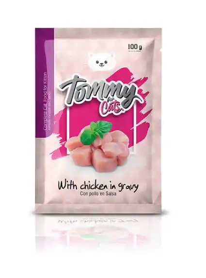 Tommy for cats con pollo en salsa: Alimento completo para gatos de todas las razas, con pollo en salsa.